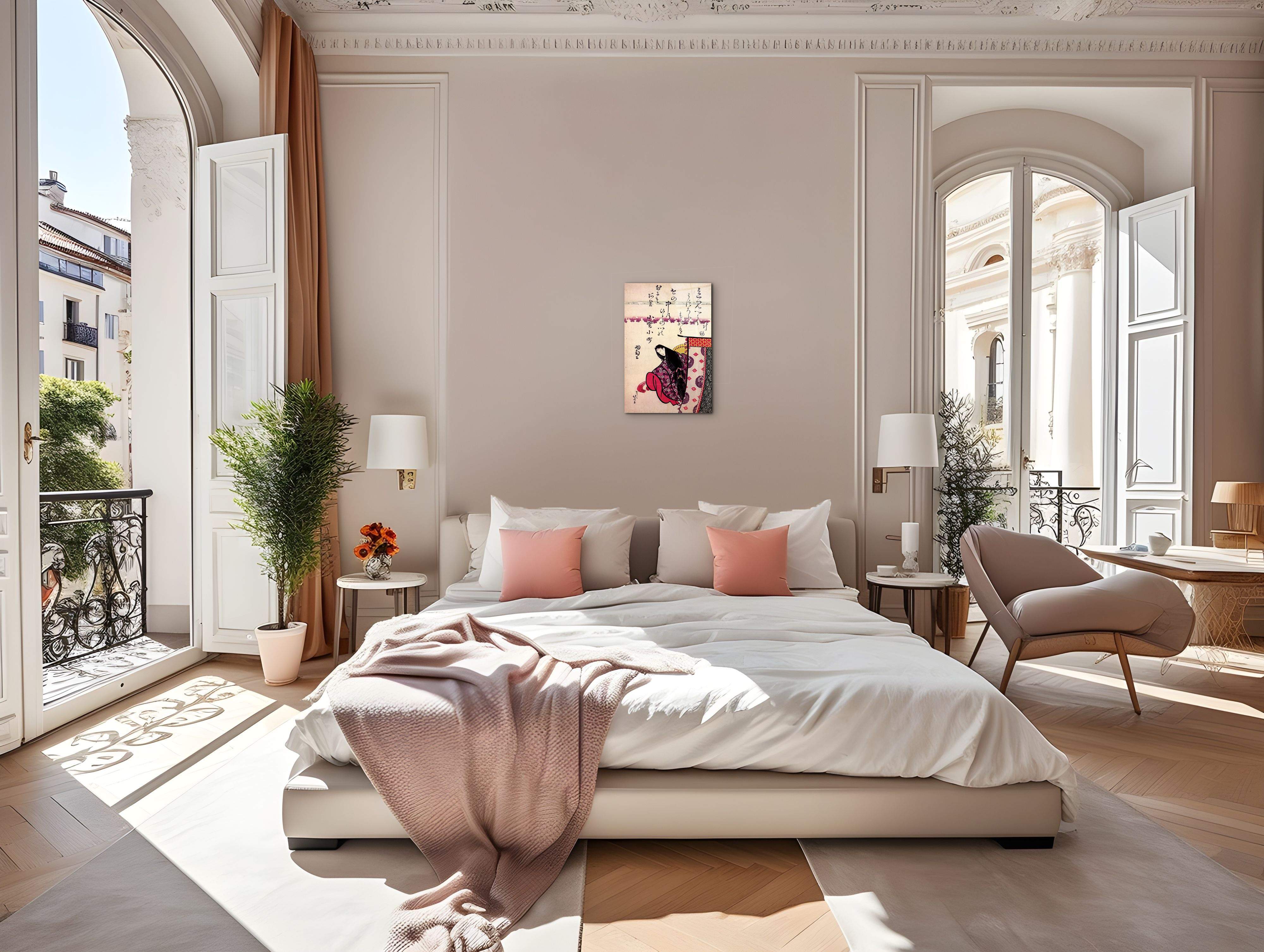 Stampa giclée su supporto opaco a trama fine. Colori uniformi, riflessi minimi: perfetta se preferisci un look soft e non vuoi interferenze di luce negli interni molto illuminati.